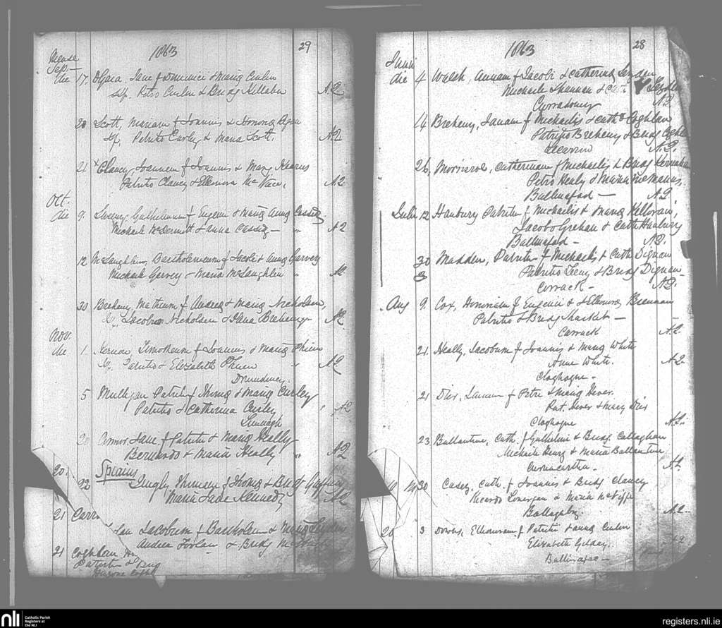 Aughanagh; County of Sligo; Diocese of Elphin. Baptisms, June 1863 to Nov. 1863