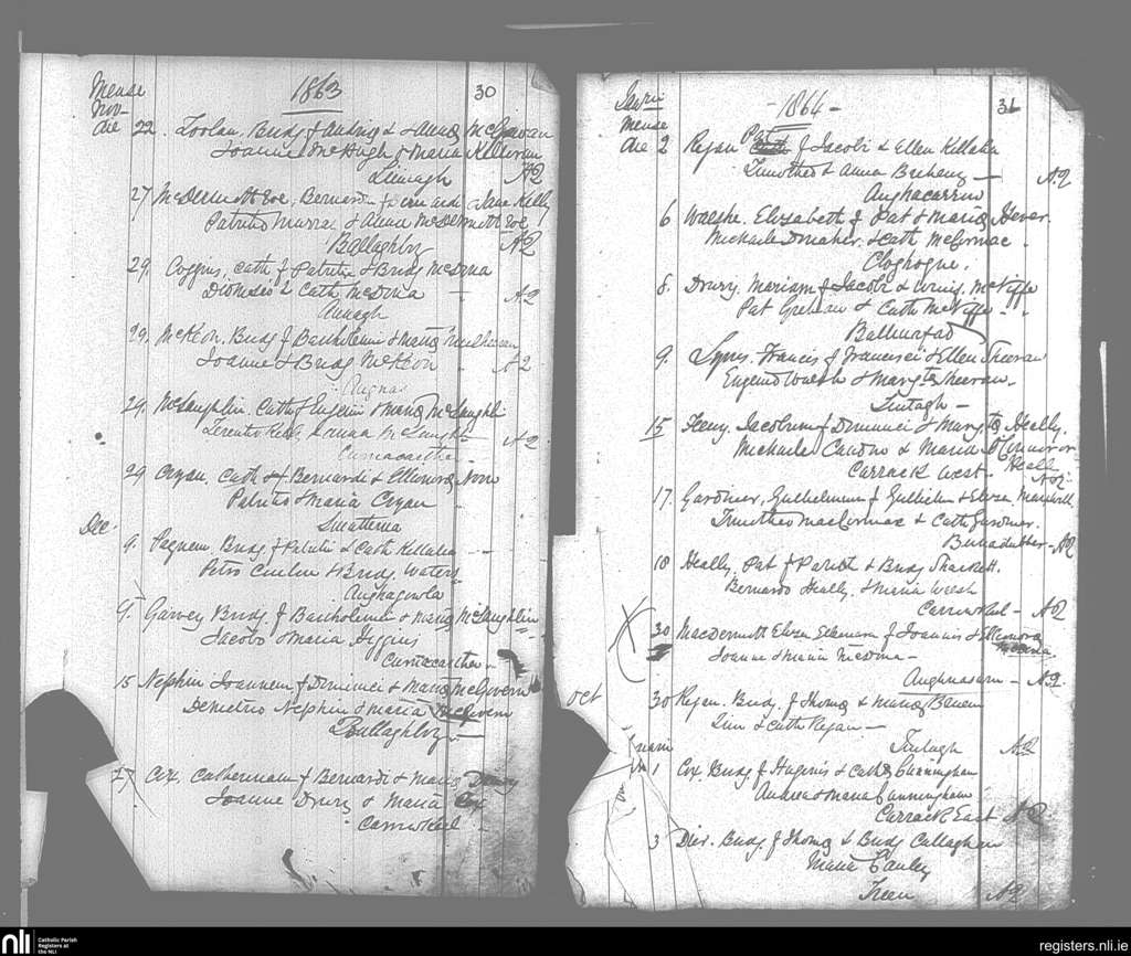 Aughanagh; County of Sligo; Diocese of Elphin. Baptisms, Nov. 1863 to Feb. 1864