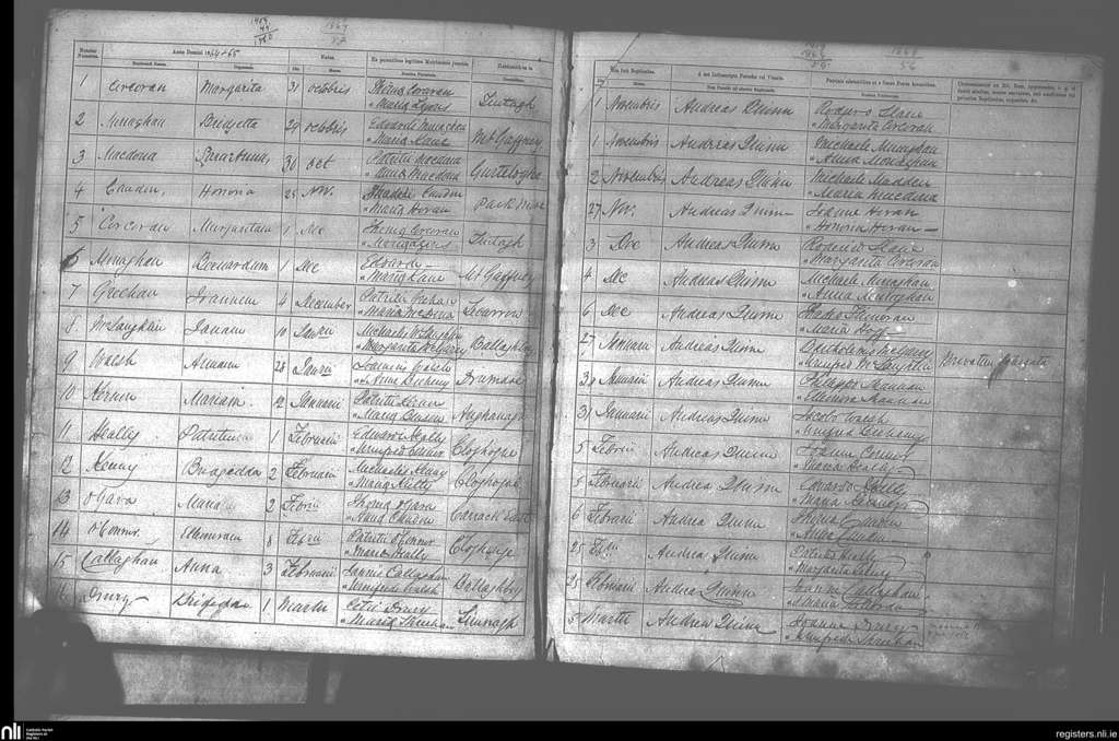 Aughanagh; County of Sligo; Diocese of Elphin. Baptisms, Nov. 1864 to Mar. 1865