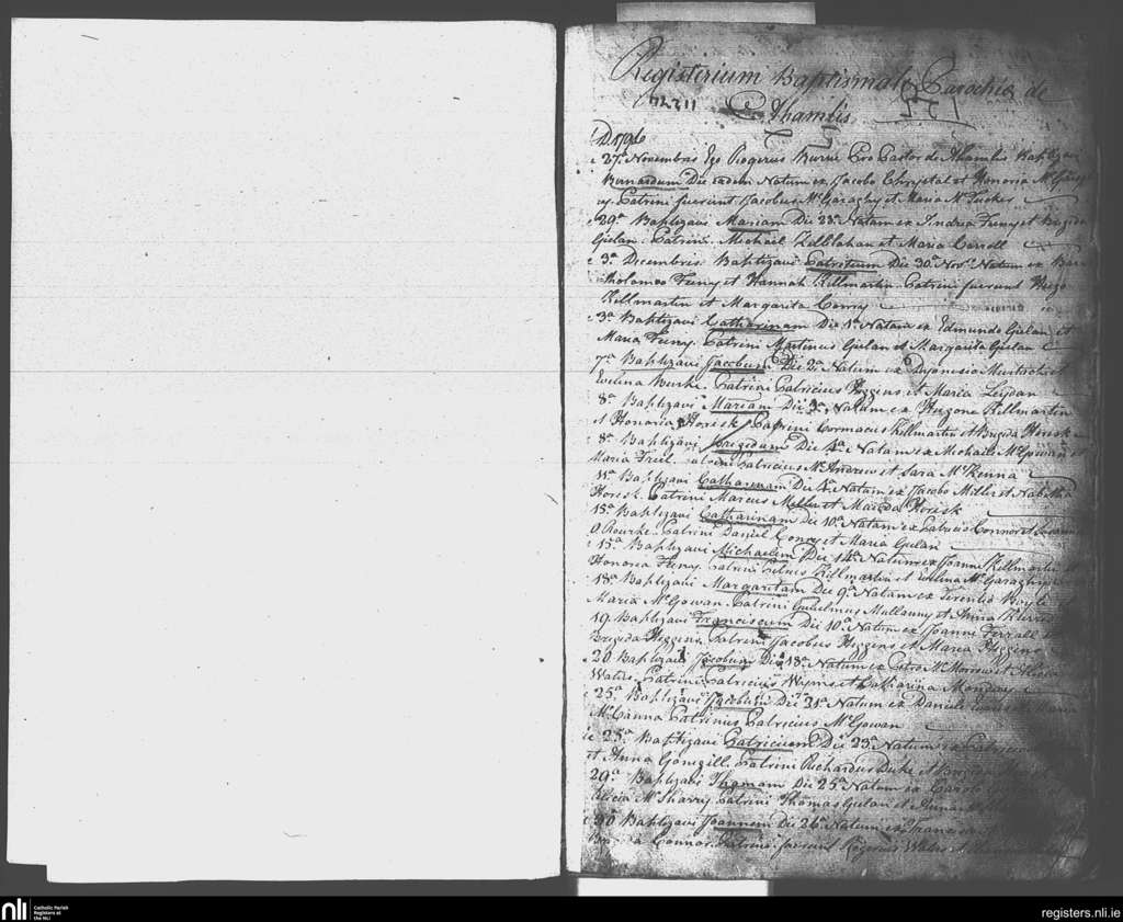 Ahamlish; County of Sligo; Diocese of Elphin. Baptisms, Nov. 1796 to Dec. 1796