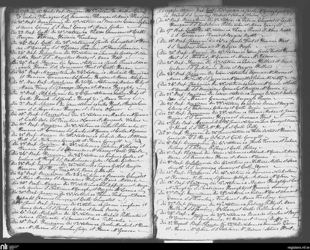 Ahamlish; County of Sligo; Diocese of Elphin. Baptisms, Apr. 1798 to Aug. 1798