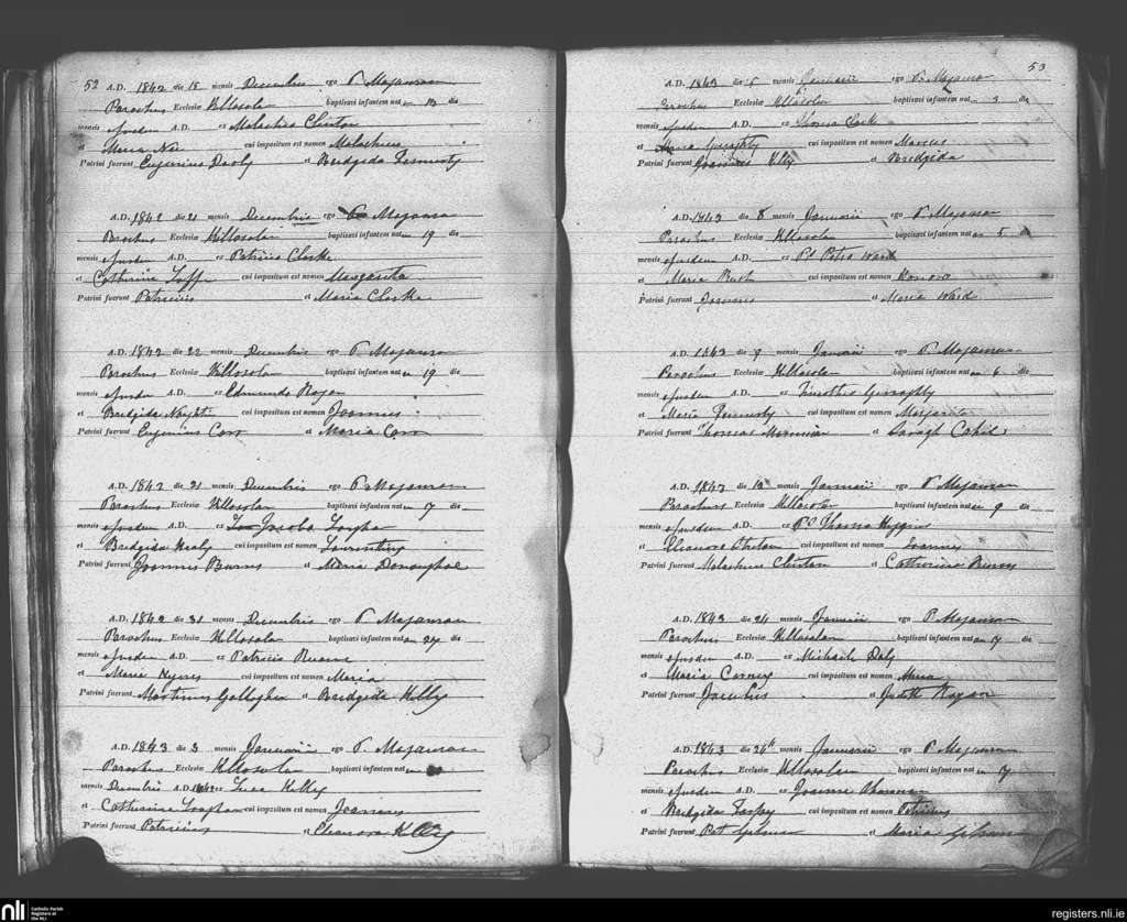 Ahascragh and Killosolan; County of Galway; Diocese of Elphin. Baptisms, Dec. 1842 to Jan. 1843