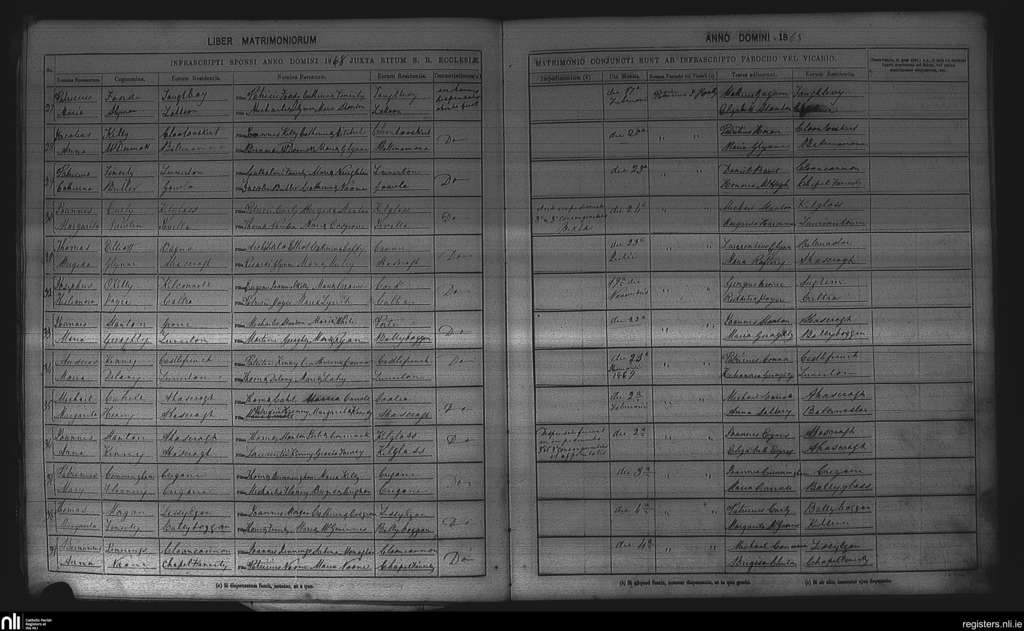 Ahascragh and Killosolan; County of Galway; Diocese of Elphin. Marriages, Feb. 1868 to Feb. 1869