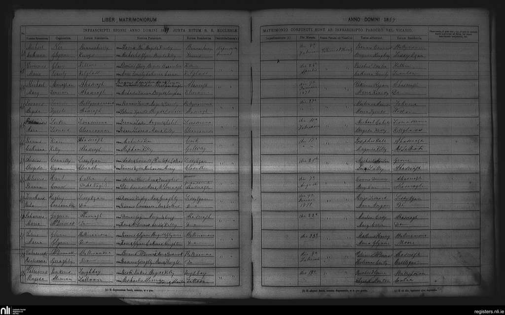 Ahascragh and Killosolan; County of Galway; Diocese of Elphin. Marriages, Feb. 1869 to Feb. 1871