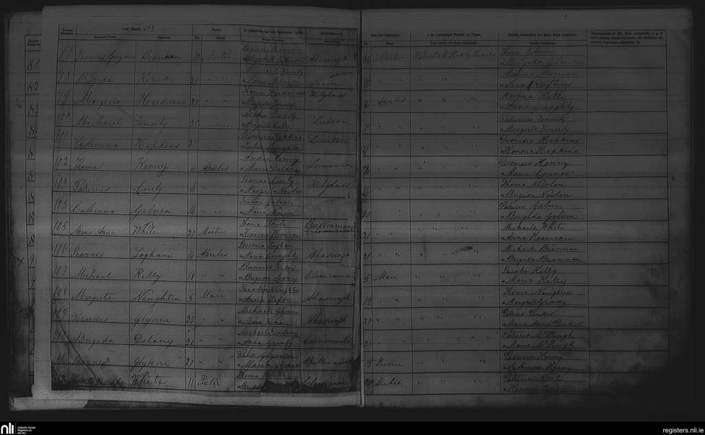 Ahascragh and Killosolan; County of Galway; Diocese of Elphin. Baptisms, Mar. 1872 to July 1872