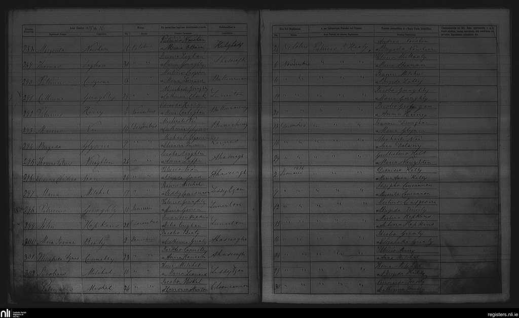 Ahascragh and Killosolan; County of Galway; Diocese of Elphin. Baptisms, Oct. 1875 to Jan. 1876
