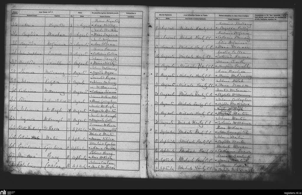 Cootehall; County of Roscommon; Diocese of Elphin. Baptisms, Aug. 1869 to Sep. 1869