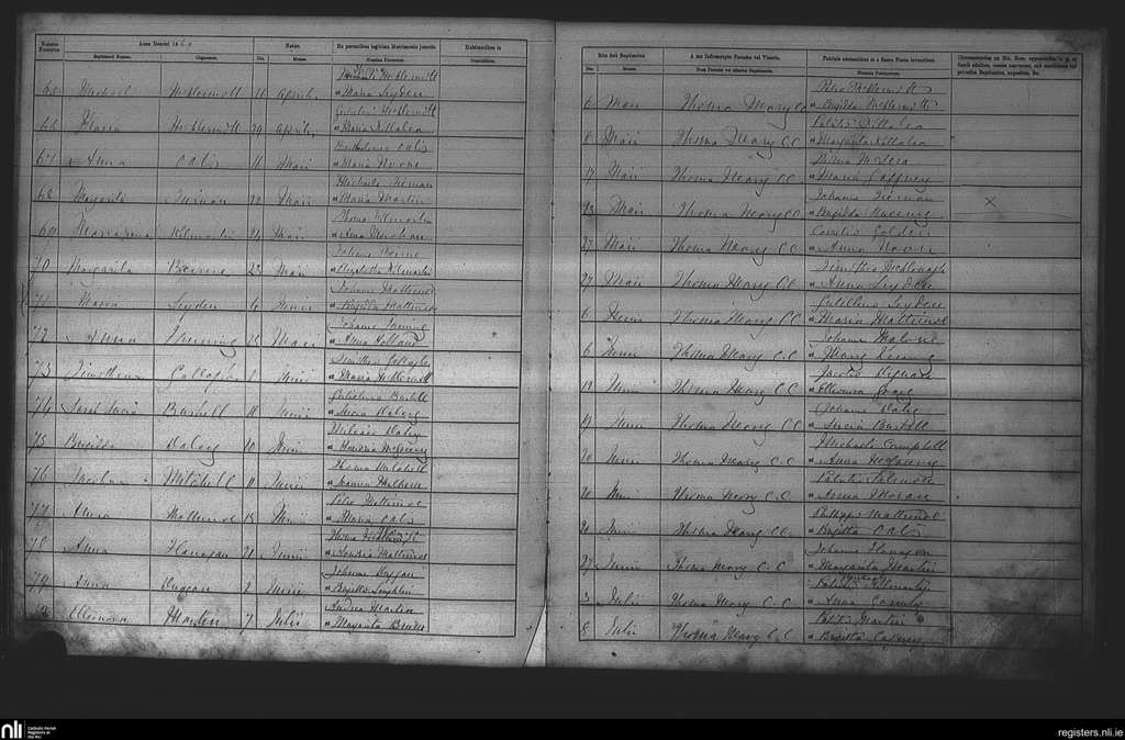 Cootehall; County of Roscommon; Diocese of Elphin. Baptisms, May 1869 to July 1869