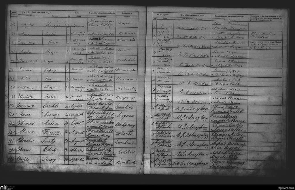Cootehall; County of Roscommon; Diocese of Elphin. Baptisms, Nov. 1869 to Sep. 1870