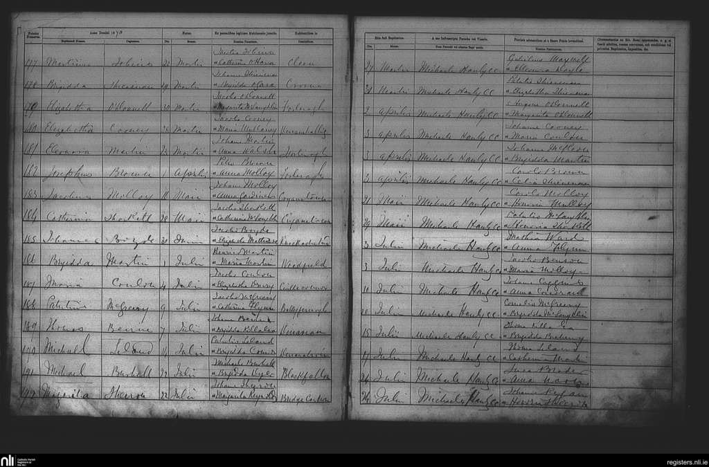 Cootehall; County of Roscommon; Diocese of Elphin. Baptisms, Mar. 1870 to July 1870