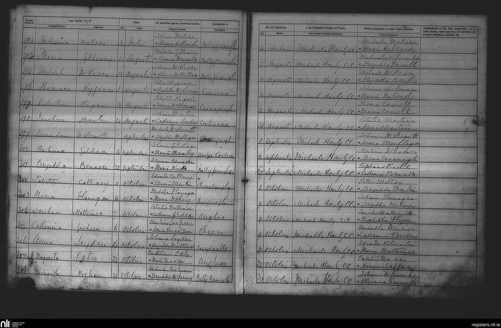 Cootehall; County of Roscommon; Diocese of Elphin. Baptisms, July 1870 to Oct. 1870