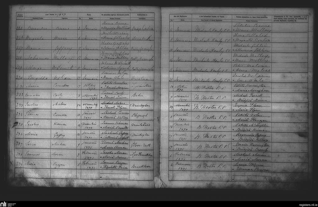 Cootehall; County of Roscommon; Diocese of Elphin. Baptisms, Oct. 1870 to Feb. 1871