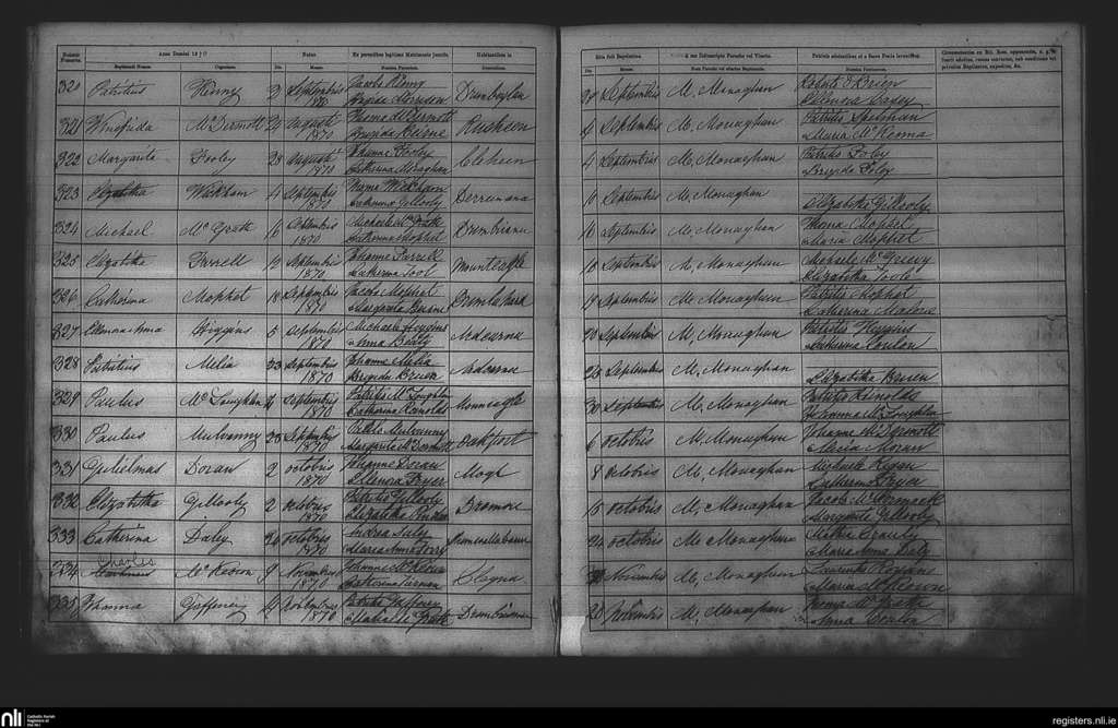 Cootehall; County of Roscommon; Diocese of Elphin. Baptisms, Sep. 1870 to Nov. 1870