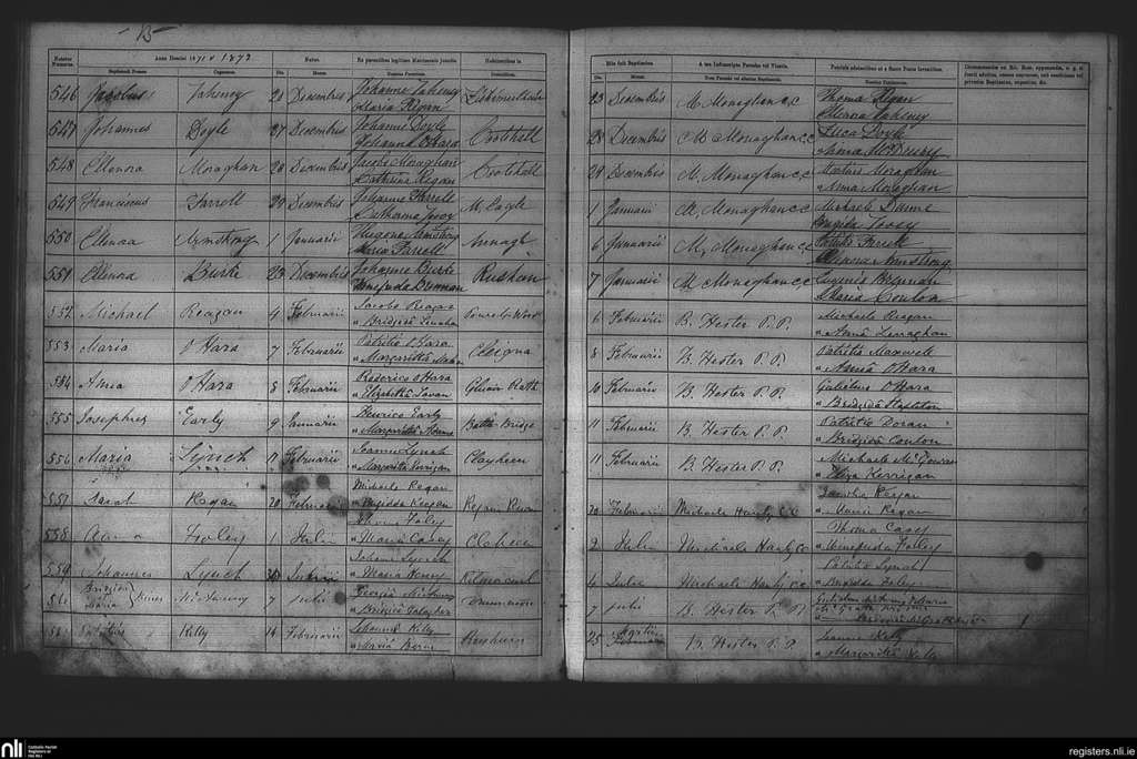 Cootehall; County of Roscommon; Diocese of Elphin. Baptisms, Dec. 1871 to July 1872