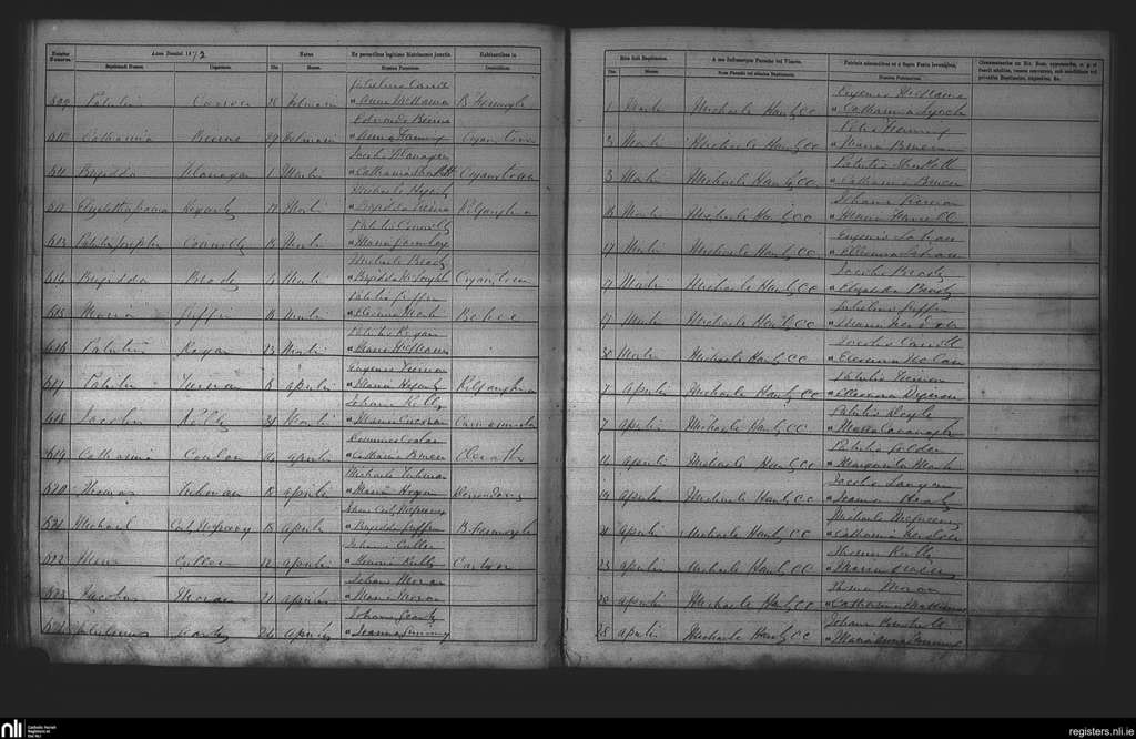 Cootehall; County of Roscommon; Diocese of Elphin. Baptisms, Mar. 1872 to Apr. 1872