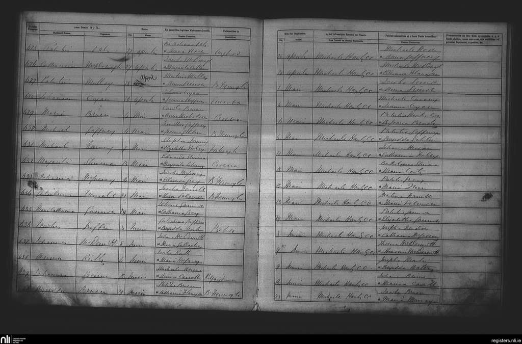 Cootehall; County of Roscommon; Diocese of Elphin. Baptisms, Apr. 1872 to June 1872