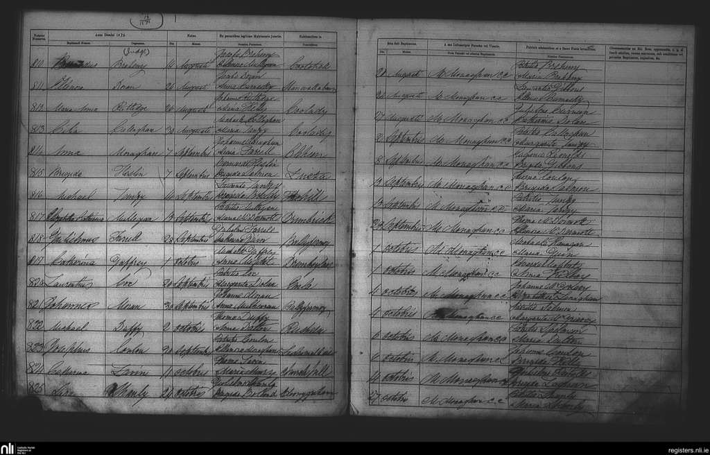 Cootehall; County of Roscommon; Diocese of Elphin. Baptisms, Aug. 1872 to Oct. 1872