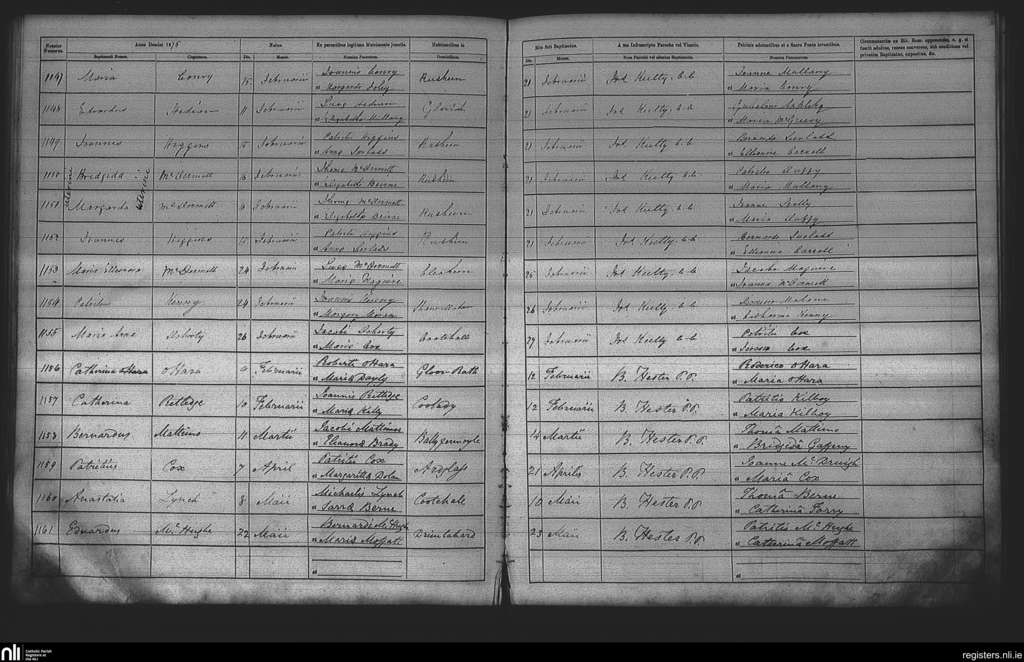 Cootehall; County of Roscommon; Diocese of Elphin. Baptisms, Feb. 1875 to May 1875