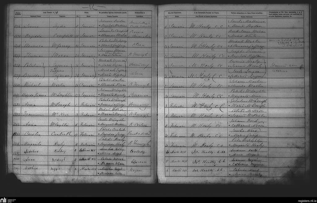 Cootehall; County of Roscommon; Diocese of Elphin. Baptisms, Mar. 1875 to Feb. 1876