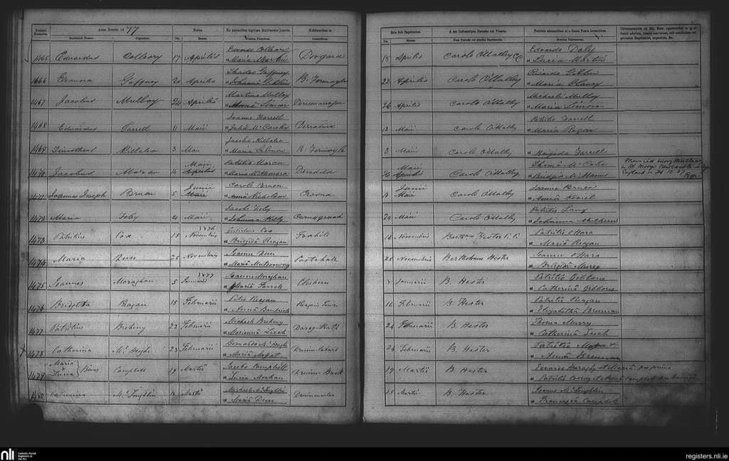 Cootehall; County of Roscommon; Diocese of Elphin. Baptisms, Jan. 1877 to Nov. 1877