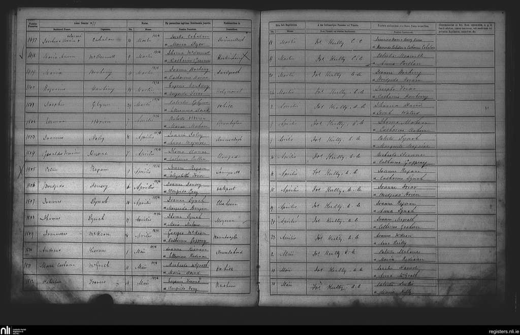 Cootehall; County of Roscommon; Diocese of Elphin. Baptisms, Mar. 1877 to May 1877