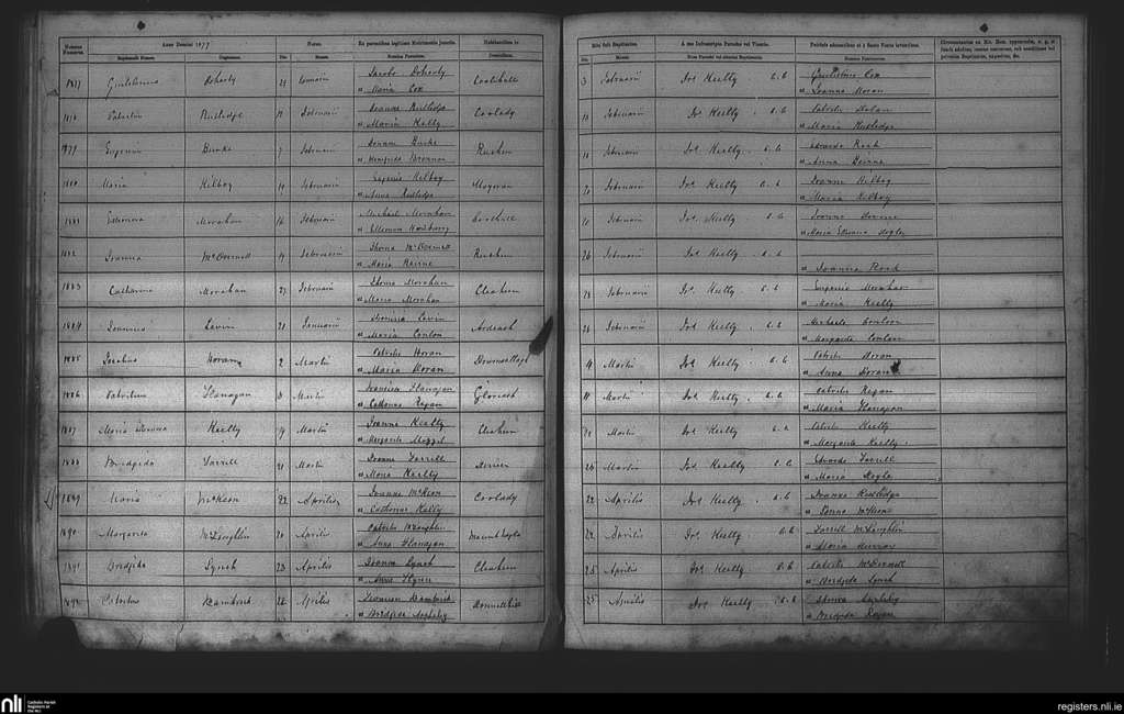 Cootehall; County of Roscommon; Diocese of Elphin. Baptisms, Feb. 1877 to Apr. 1877