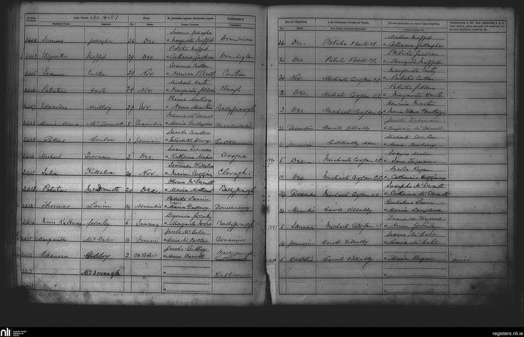 Cootehall; County of Roscommon; Diocese of Elphin. Baptisms, Oct. 1880 to Jan. 1881