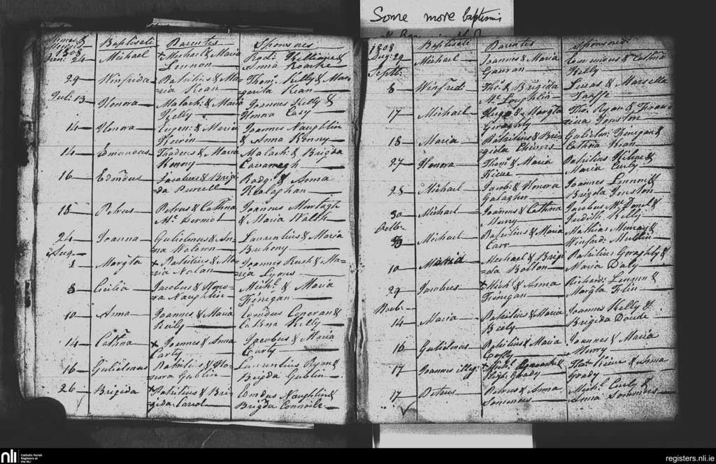 Athleague; County of Galway, Roscommon; Diocese of Elphin. Baptisms, June 1808 to Nov. 1808