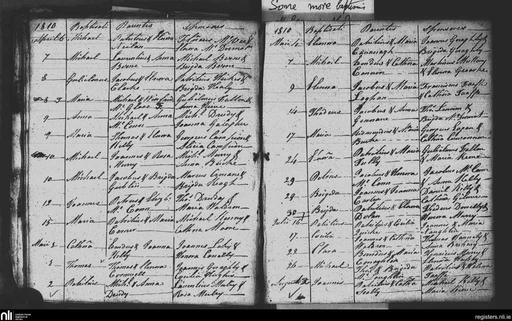 Athleague; County of Galway, Roscommon; Diocese of Elphin. Baptisms, Apr. 1810 to Aug. 1810