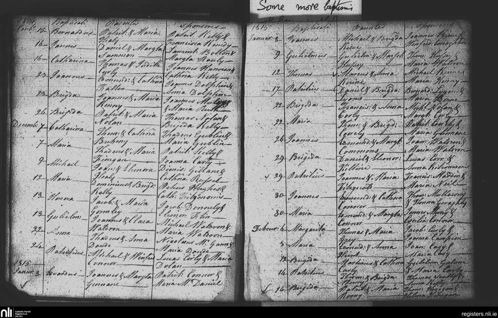 Athleague; County of Galway, Roscommon; Diocese of Elphin. Baptisms, Nov. 1814 to Feb. 1815