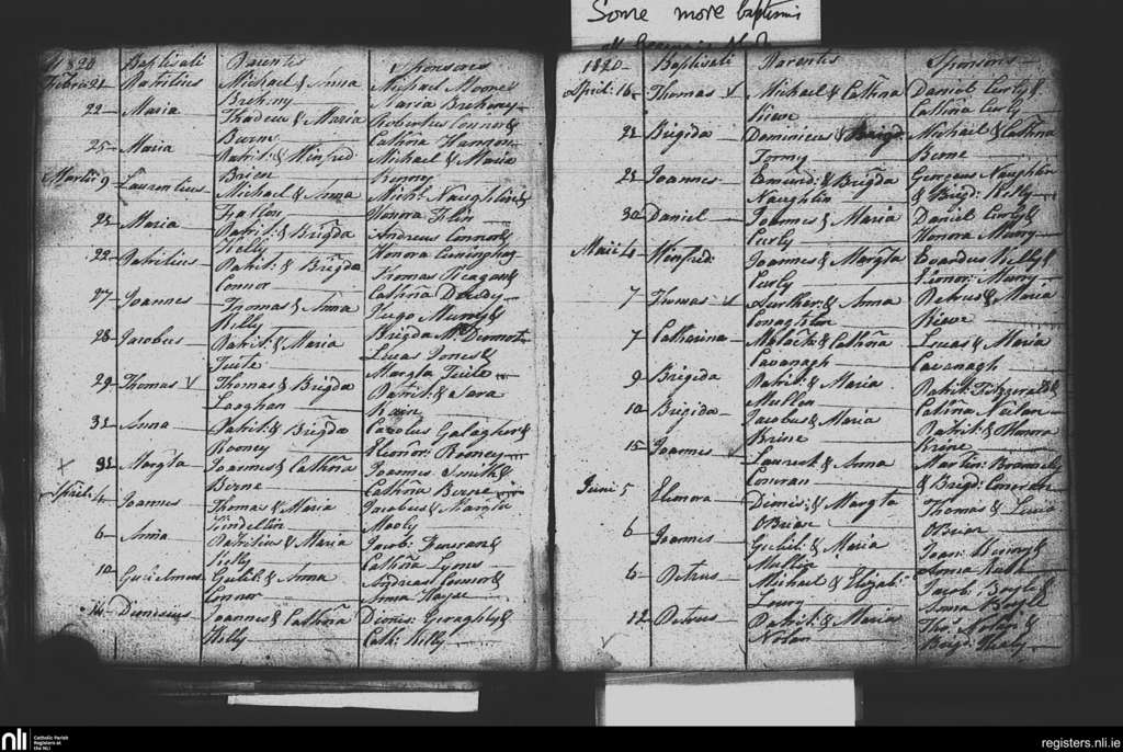 Athleague; County of Galway, Roscommon; Diocese of Elphin. Baptisms, Feb. 1820 to June 1820