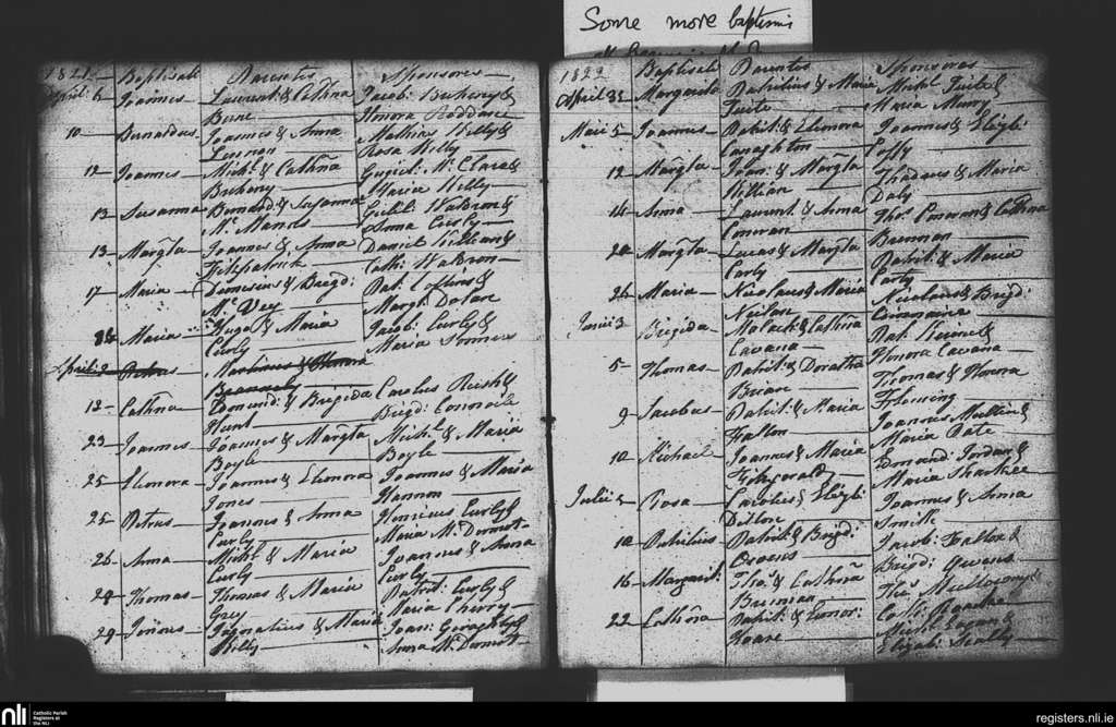 Athleague; County of Galway, Roscommon; Diocese of Elphin. Baptisms, Apr. 1822 to July 1822