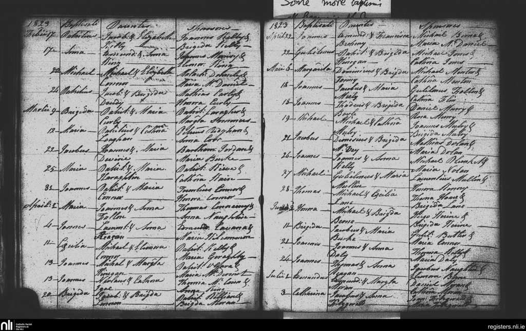 Athleague; County of Galway, Roscommon; Diocese of Elphin. Baptisms, Feb. 1823 to July 1823
