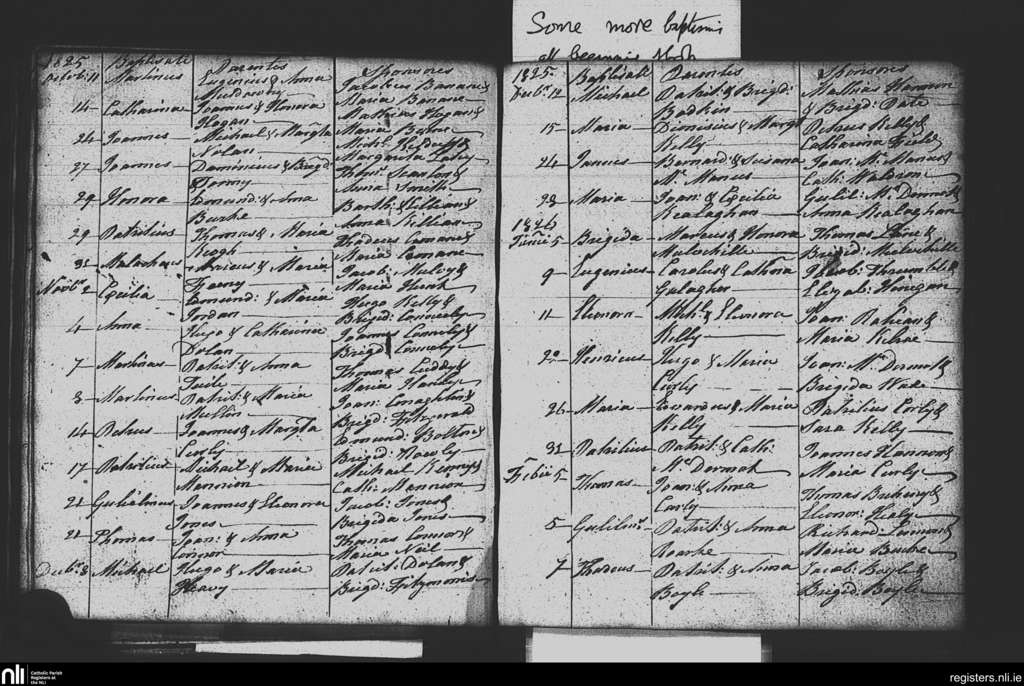 Athleague; County of Galway, Roscommon; Diocese of Elphin. Baptisms, Oct. 1825 to Feb. 1826