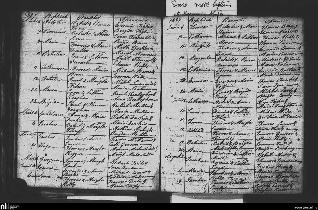 Athleague; County of Galway, Roscommon; Diocese of Elphin. Baptisms, Mar. 1827 to Aug. 1827