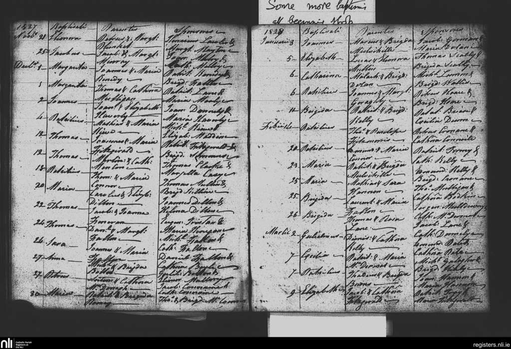 Athleague; County of Galway, Roscommon; Diocese of Elphin. Baptisms, Nov. 1827 to Mar. 1828