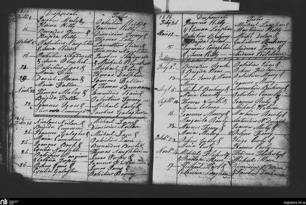 Athleague; County of Galway, Roscommon; Diocese of Elphin. Marriages, July 1815 to Nov. 1816