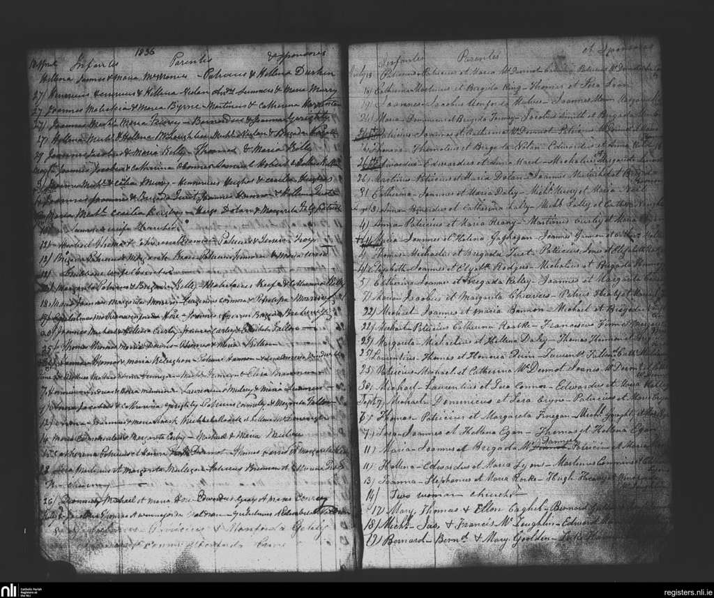 Athleague; County of Roscommon, Galway; Diocese of Elphin. Baptisms, Apr. 1836 to Sep. 1836