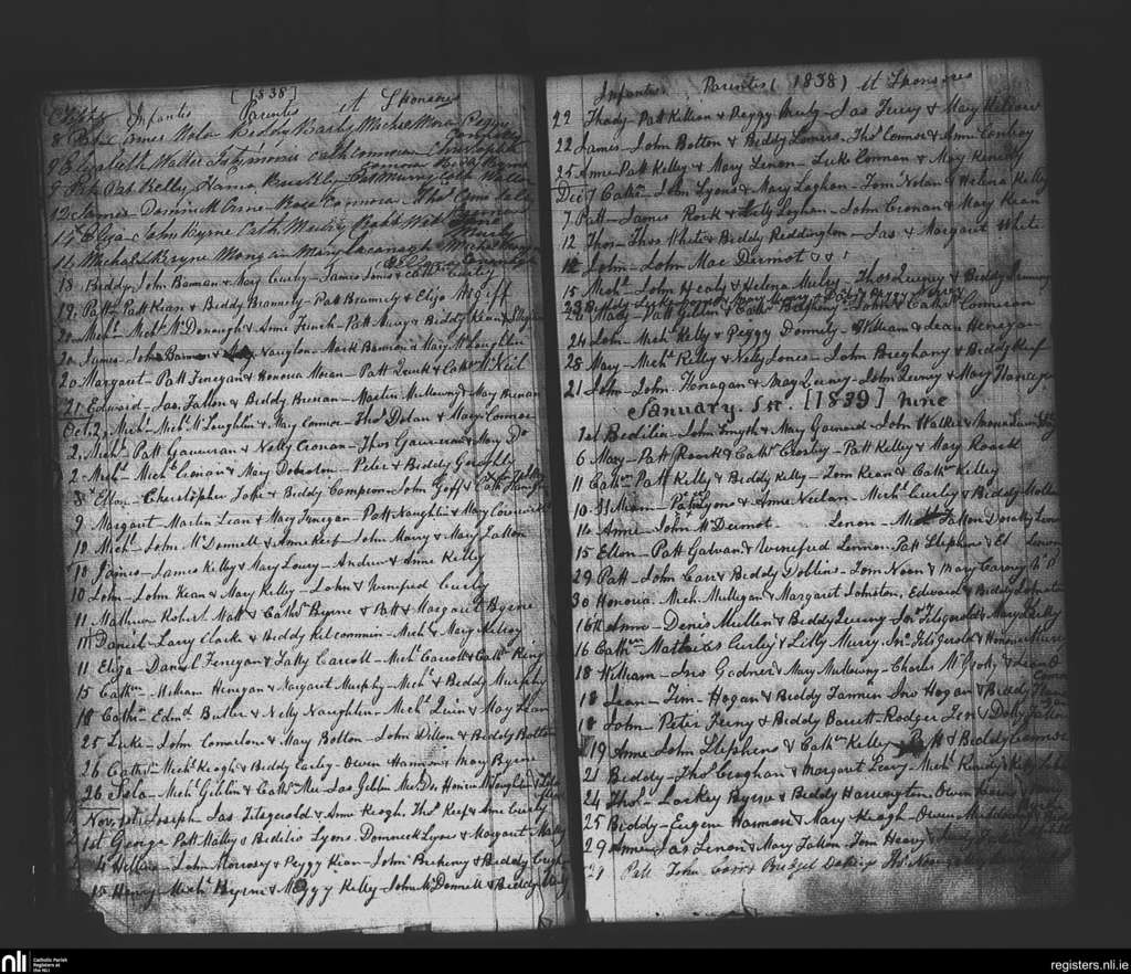 Athleague; County of Roscommon, Galway; Diocese of Elphin. Baptisms, Sep. 1838 to Jan. 1839