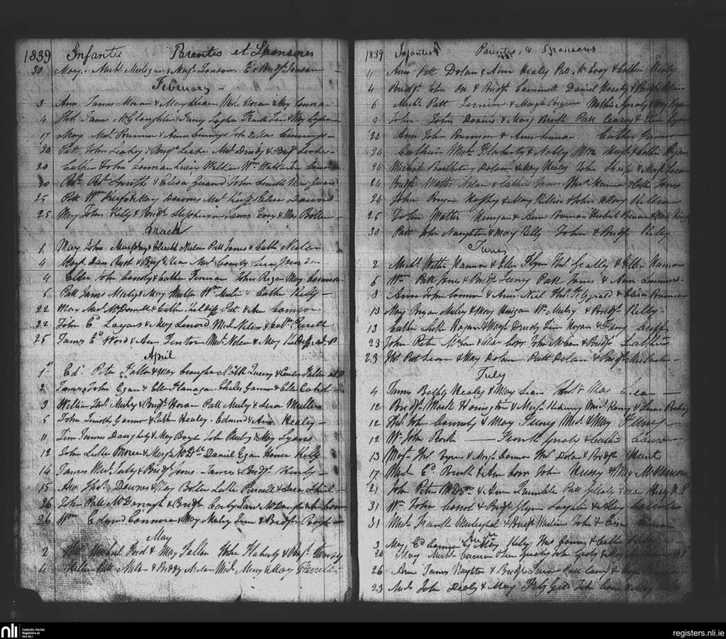 Athleague; County of Roscommon, Galway; Diocese of Elphin. Baptisms, Jan. 1839 to Aug. 1839