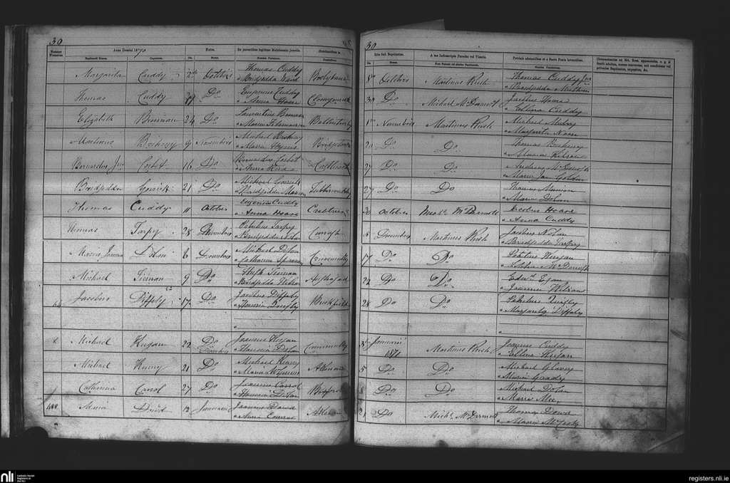 Athleague; County of Galway, Roscommon; Diocese of Elphin. Baptisms, Oct. 1870 to Jan. 1871