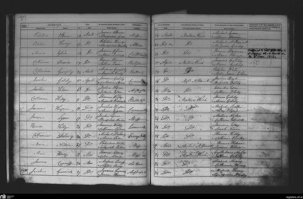 Athleague; County of Galway, Roscommon; Diocese of Elphin. Baptisms, Mar. 1872 to May 1872