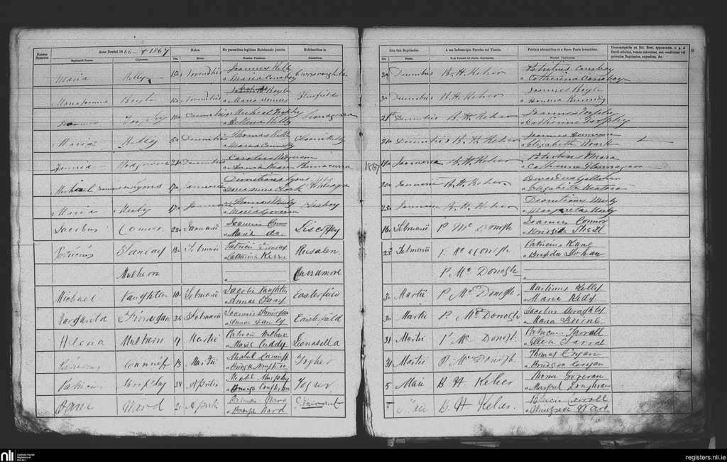 Athleague; County of Galway, Roscommon; Diocese of Elphin. Baptisms, Dec. 1866 to May 1867