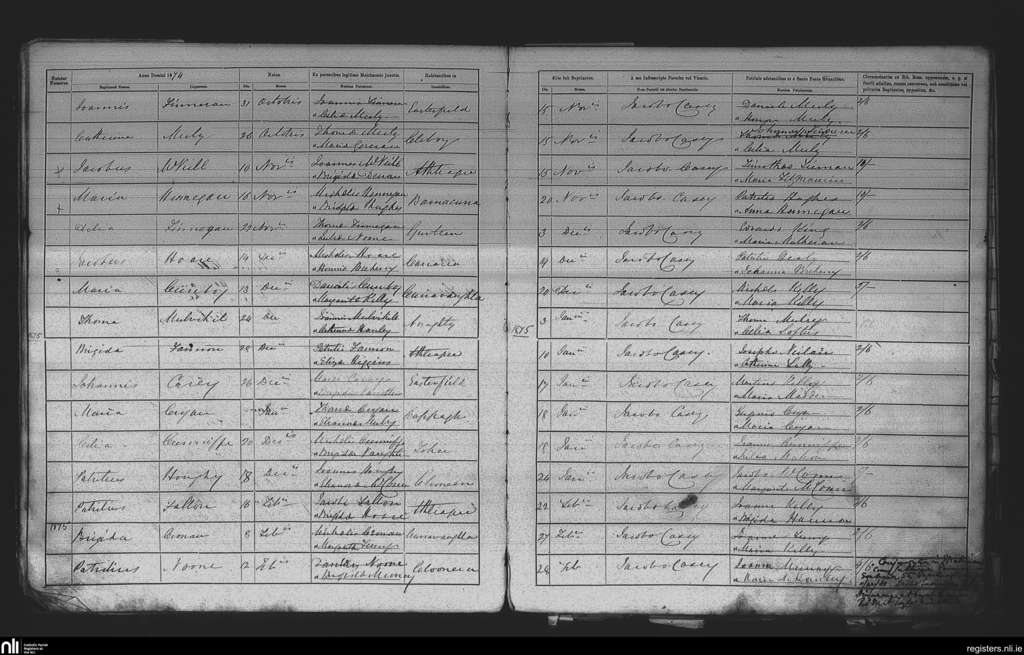Athleague; County of Galway, Roscommon; Diocese of Elphin. Baptisms, Nov. 1874 to Feb. 1875