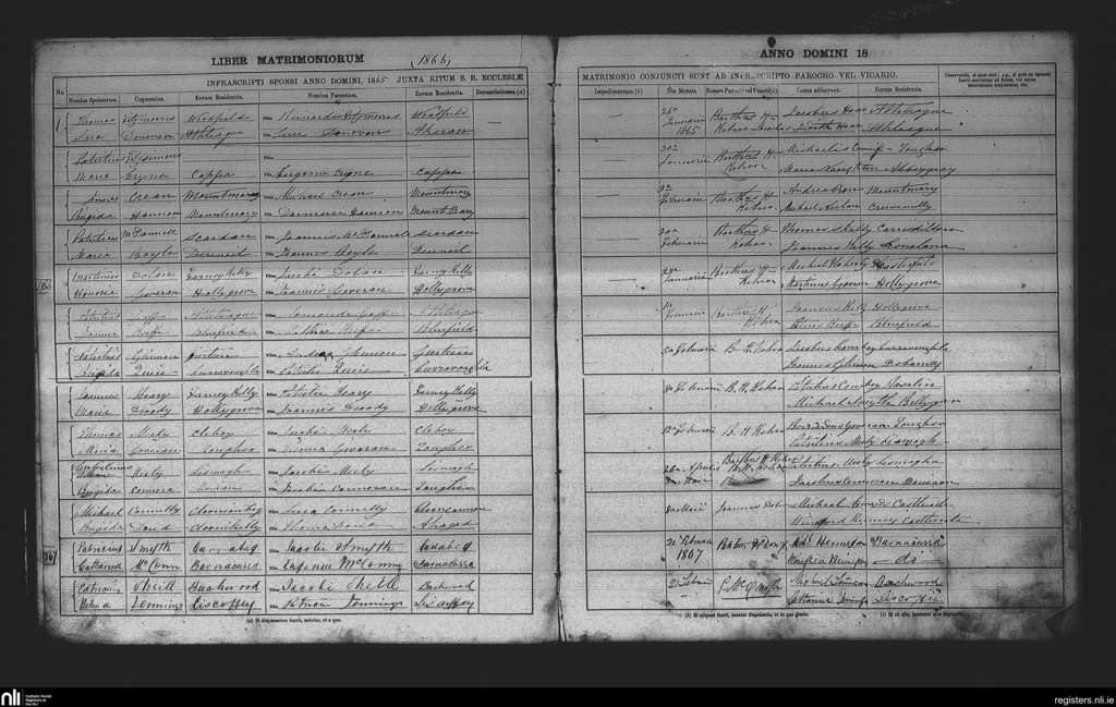 Athleague; County of Galway, Roscommon; Diocese of Elphin. Marriages, Jan. 1865 to Feb. 1867