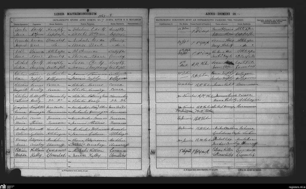 Athleague; County of Galway, Roscommon; Diocese of Elphin. Marriages, Feb. 1867 to Aug. 1868