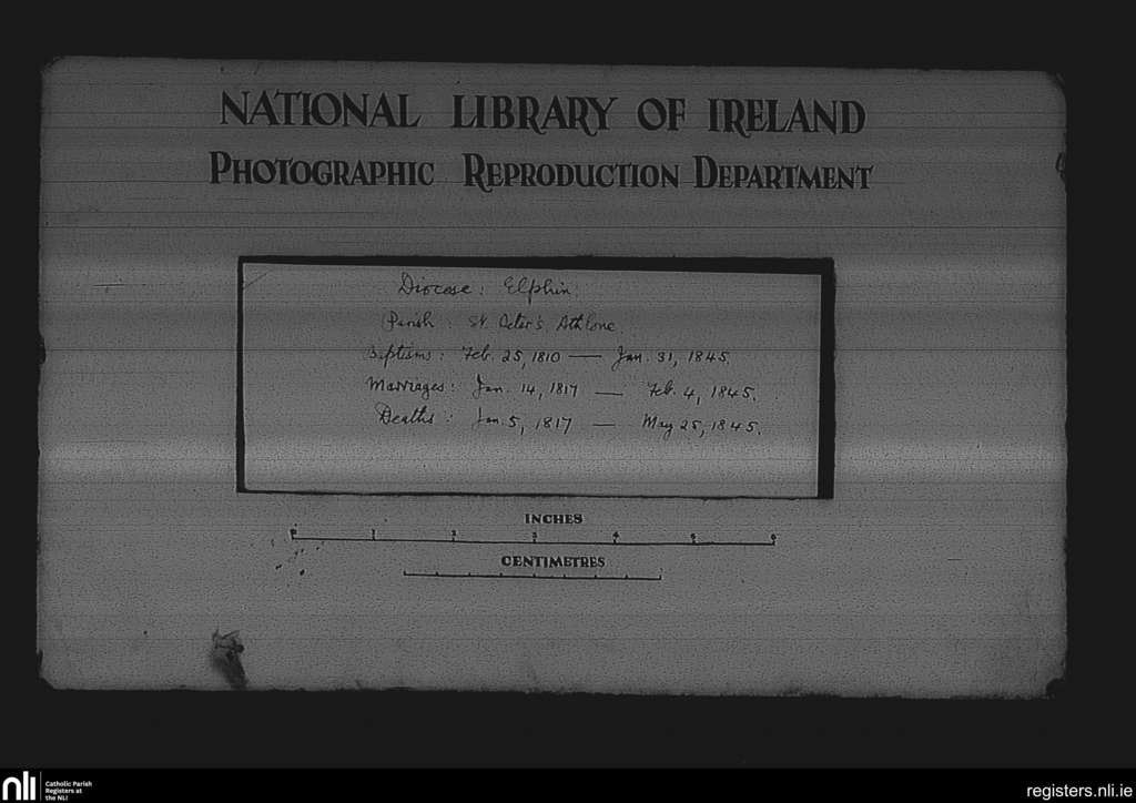 St. Peter's, Athlone; County of Roscommon; Diocese of Elphin. Baptisms, Marriages, Deaths