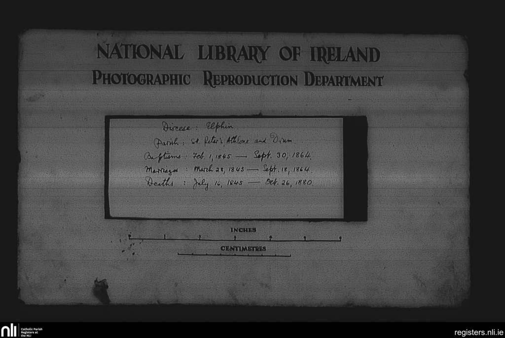 St. Peter's, Athlone; County of Roscommon; Diocese of Elphin. Baptisms, Marriages, Deaths