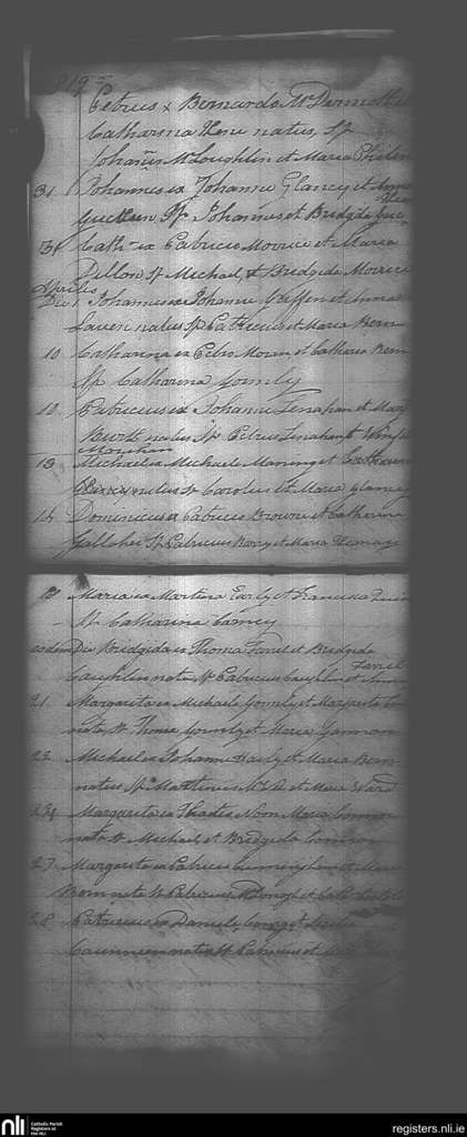 Aughrim; County of Roscommon; Diocese of Elphin. Baptisms, Mar. 1819 to Apr. 1819
