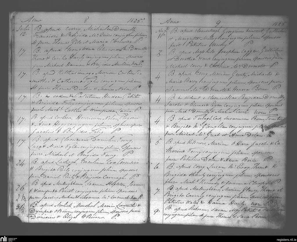 Aughrim; County of Roscommon; Diocese of Elphin. Baptisms, July 1825 to Aug. 1825
